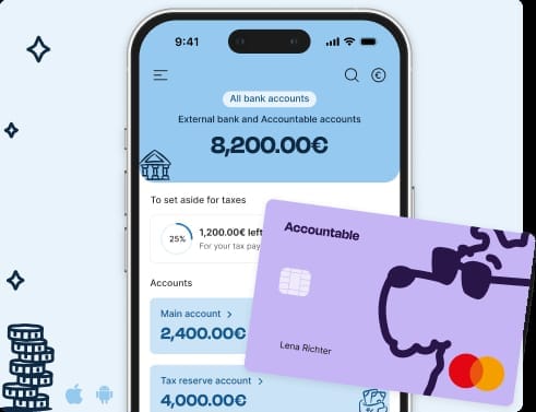 What is unique and nicely tailored for a freelancer-focused banking use case is that I have two separate IBAN accounts: one primary account and the second one is the tax reserve account. It is one of the biggest traps for freelancers to spend money that is in their bank account but technically does not belong to them (e.g., income tax or VAT). Accountable helps users recognize how much of their bank account balance needs to be transferred to the financial authority at a later point and moves this to the tax reserve account.