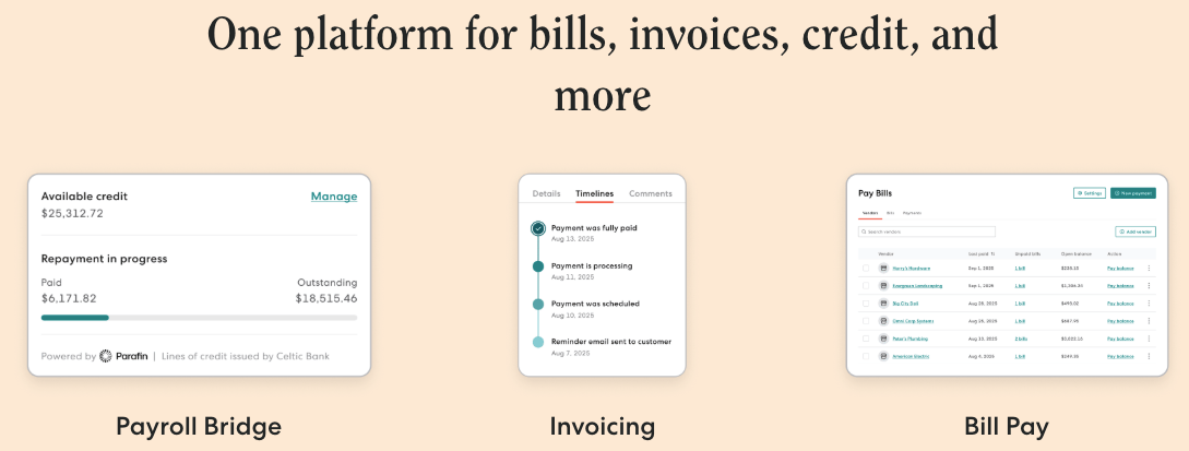 While presented together under the Gusto Money brand, these features actually rolled out separately throughout 2025: Bill Pay launched in May through the Melio partnership, followed by Payroll Bridge with Parafin in September. Notably, rather than building these financial services in-house, Gusto is leveraging embedded solutions from specialised fintech providers.