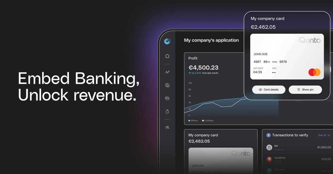 What happened: The French SME neobank has launched an embedded banking offering. There is no official announcement (yet), but the offering is described on Qonto’s website (Qonto). The website also features several French businesses, mostly in the accounting and legal space, as the first partners. The service is available in eight countries: France, Germany, Italy, Spain, Portugal, the Netherlands, Belgium, and Austria.