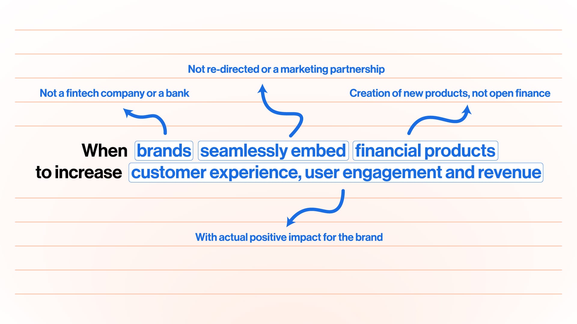 An Embedded Finance product succeeds when the user and the non-financial brand gain something. No company embeds financial services for its own sake but for a reason. I would argue that any of these reasons ultimately means higher revenue and profit for the company. But if we want to split them into one stage before, I would separate them into: